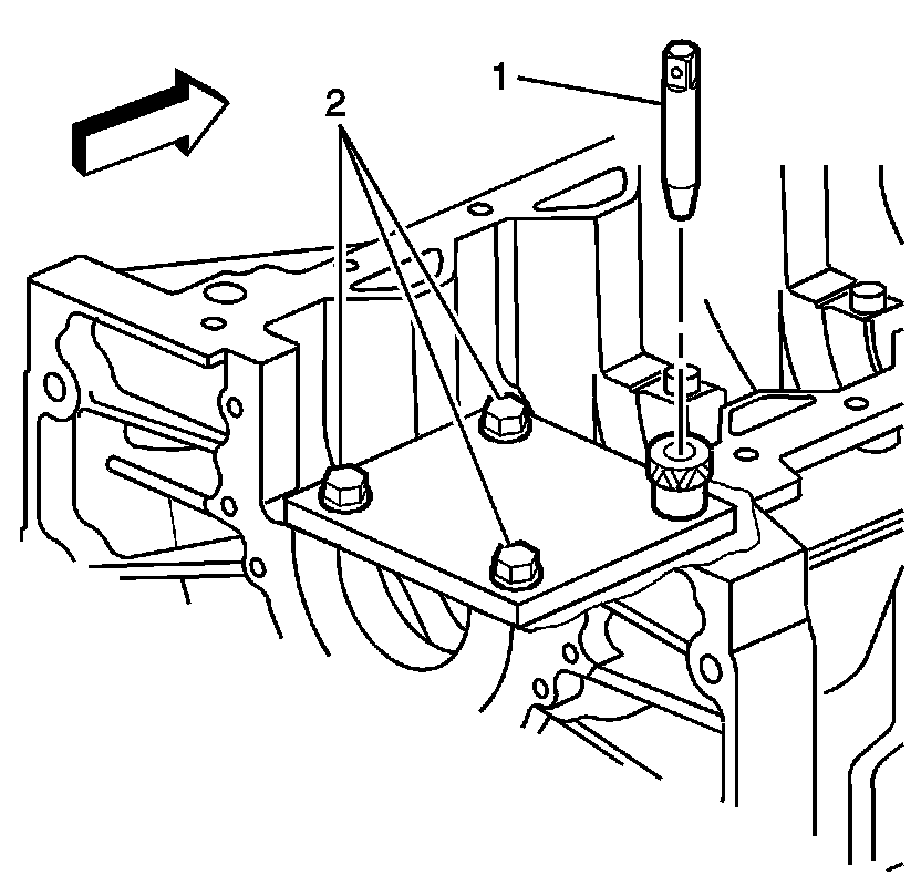 4. With the alignment pin in the desired cylinder head bolt hole, tighten the fixture retaining bolts (2).