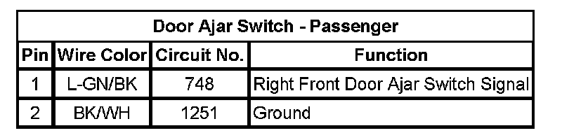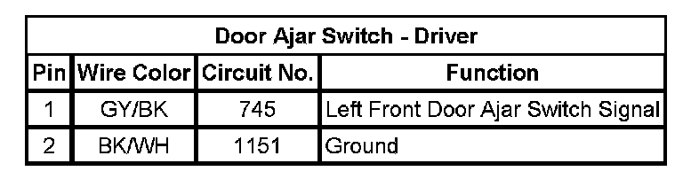 Door Ajar Switch - Driver