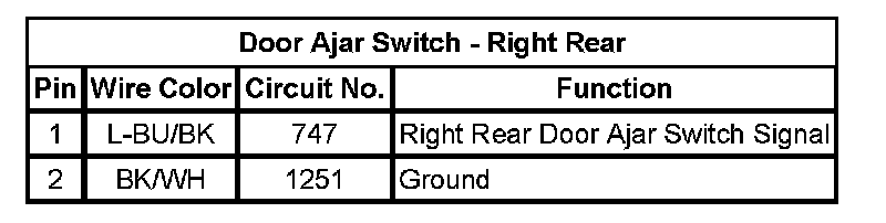 Door Ajar Switch - Right Rear
