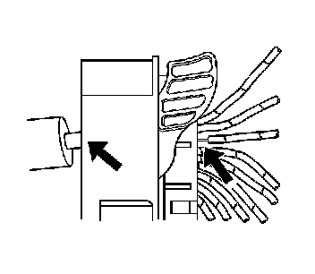 6. Insert the J38125-21 (GM P/N 15381651-2) tool into the round canal between the terminals cavities at the front of the connector. See the release tool cross reference in the Reference Guide of the J-38125 to ensure that the correct release tool is used.