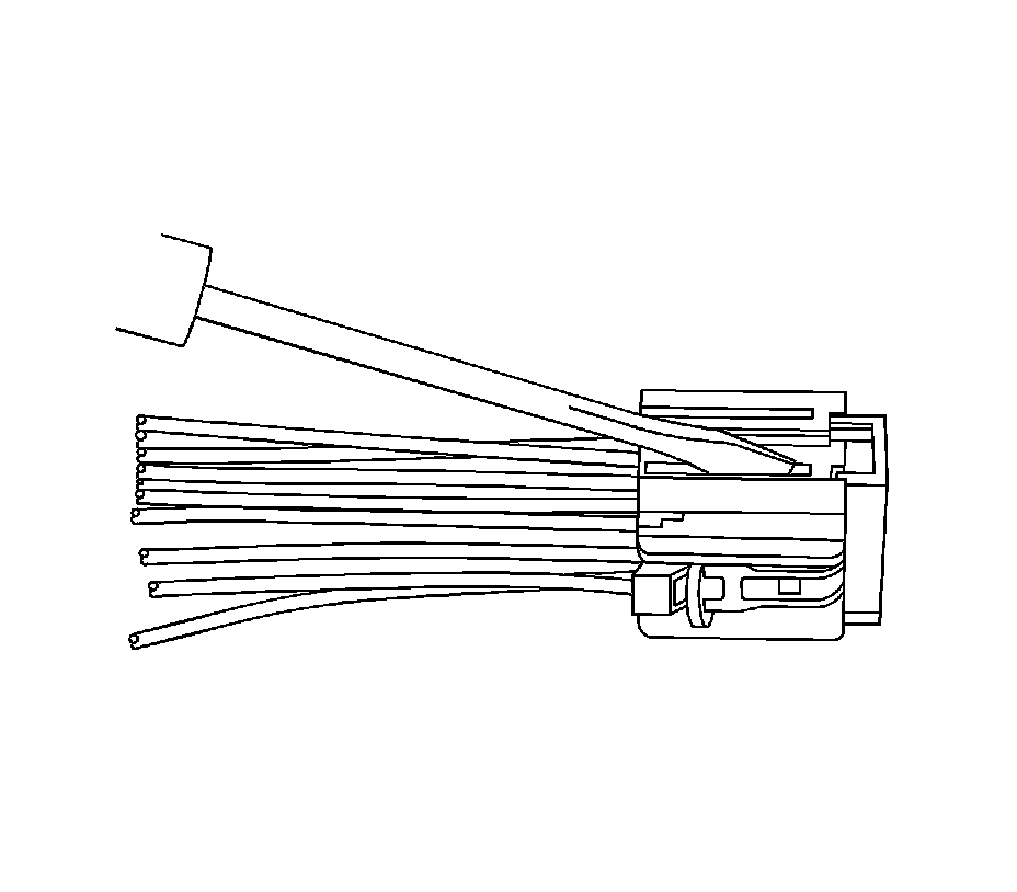 3. Use the J38125-215 tool to release the terminals by inserting the tool into the terminal release cavity. See the release tool cross reference in the Reference Guide of the J-38125 to ensure that the correct release tool is used.
