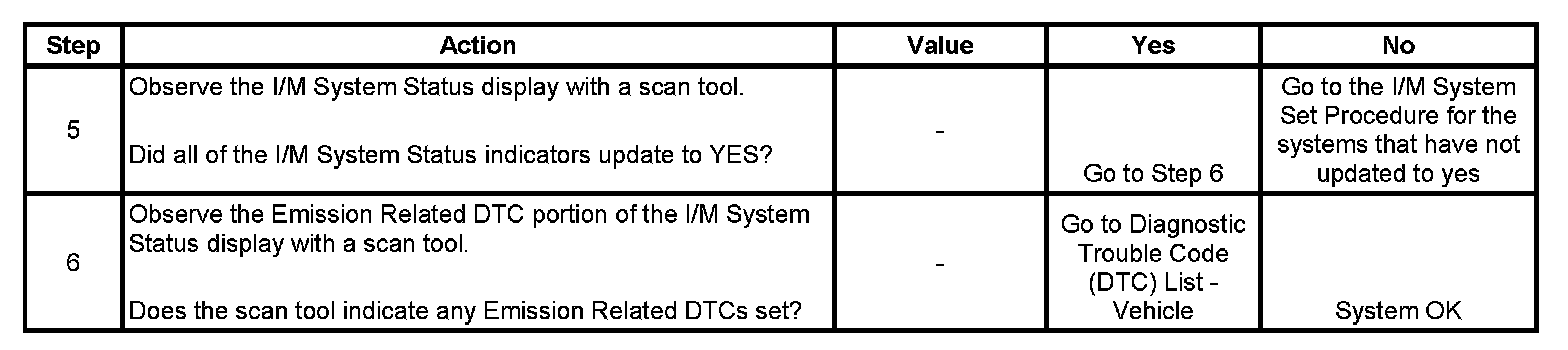 6. The I/M System Status only reports on whether or not a diagnostic has run, not what the outcome of the test was. If any emission related DTC sets after the tests are complete, the DTC will require diagnosis.