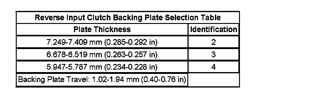 Reverse Input Clutch Backing Plate Selection:
