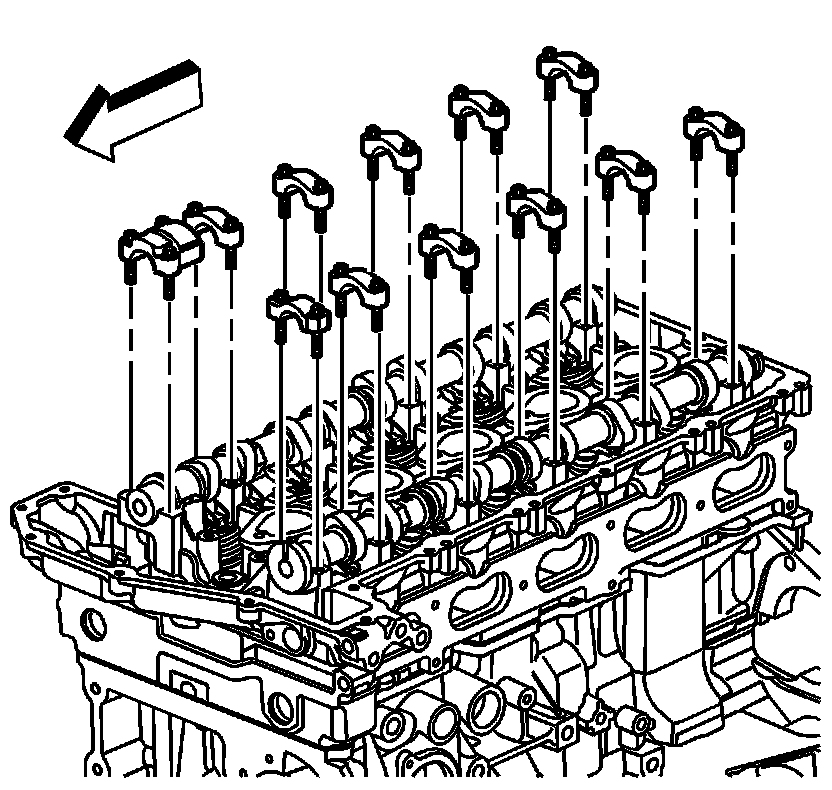 Important: Install the same camshaft cap onto the same camshaft journal from which it was removed. The camshaft caps are pin stamped for direction and numerical order.
