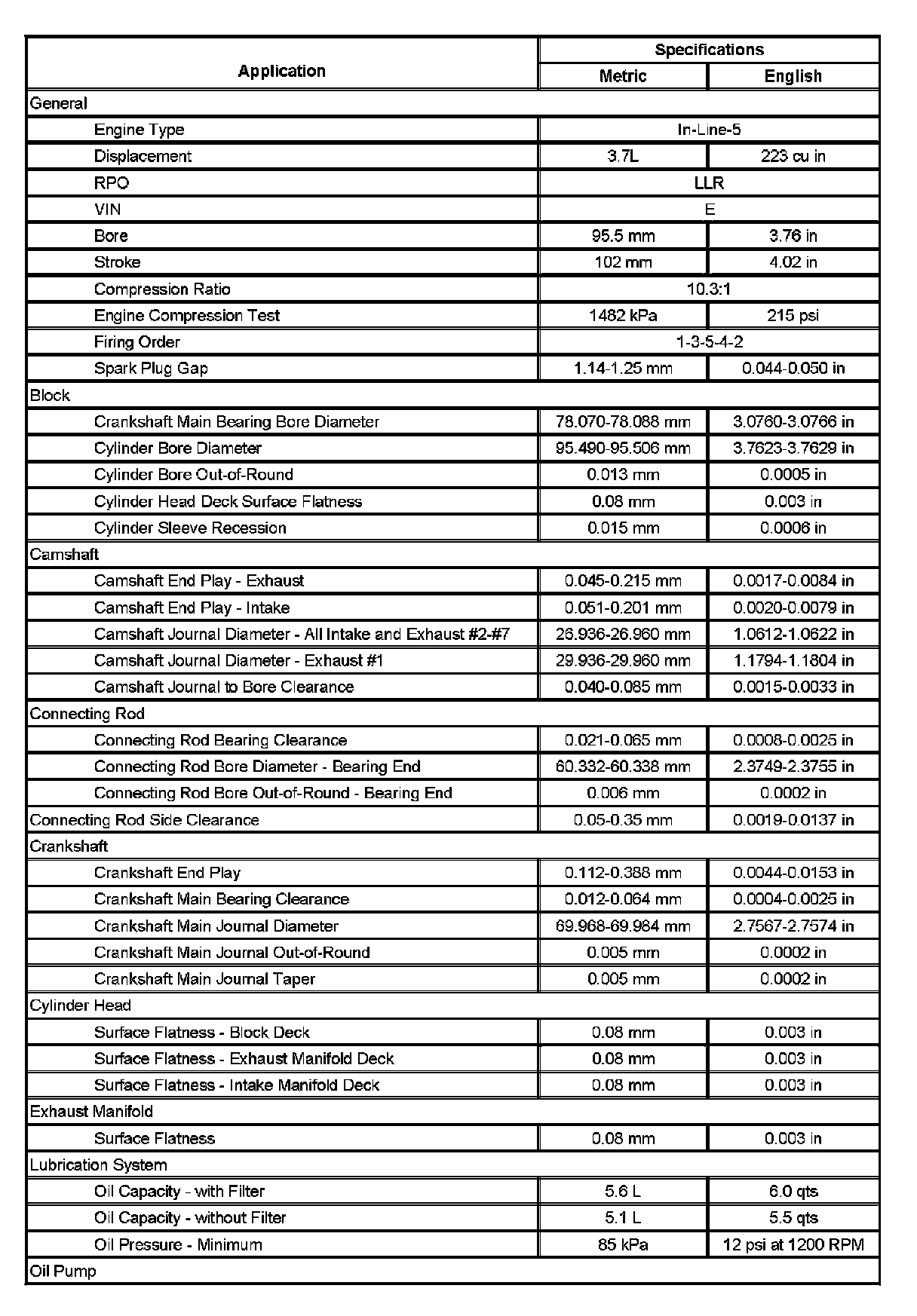 Engine Mechanical Specifications