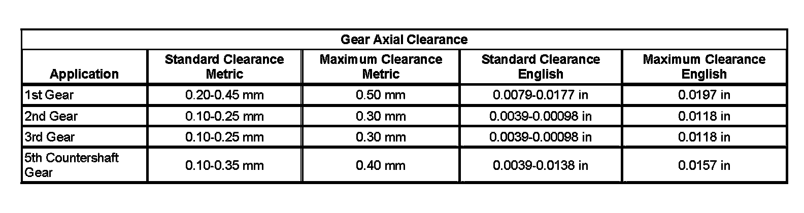Transmission Clearance Specifications (part 5):