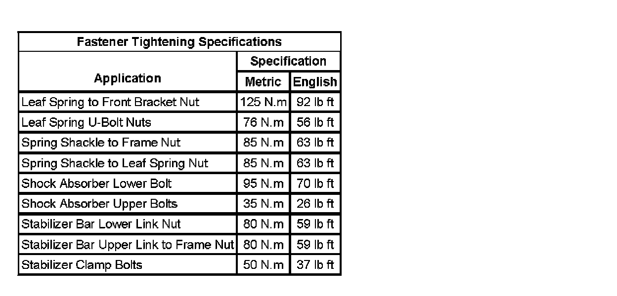 Fastener Tightening Specifications: