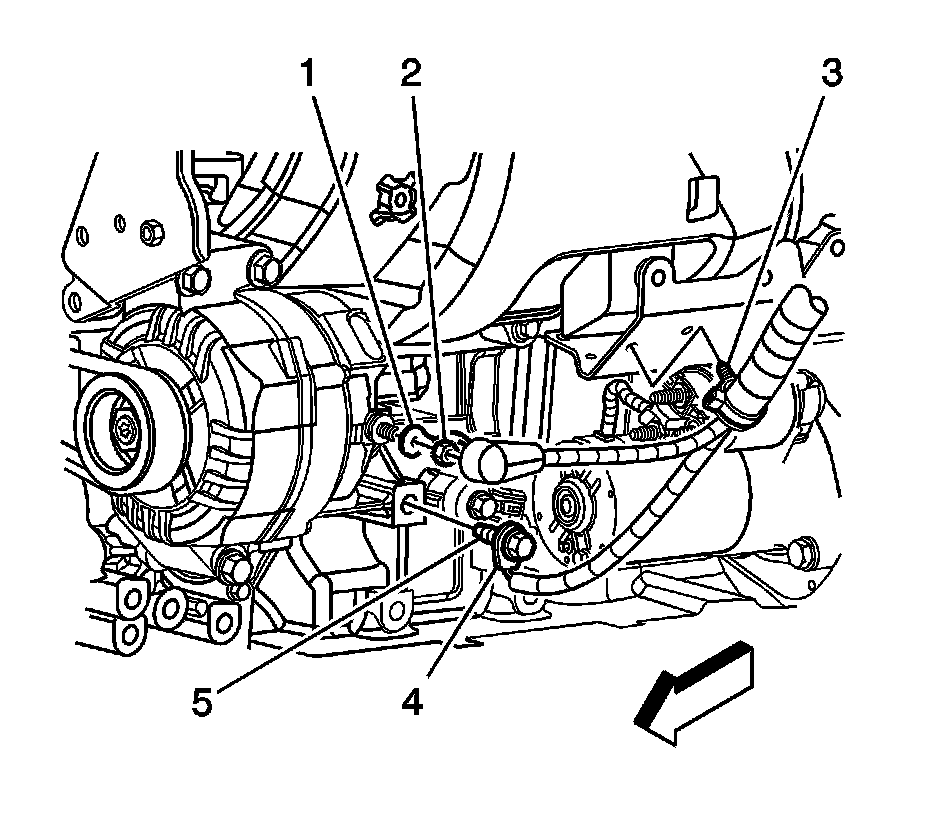 4. Remove the nut (1) securing the generator positive cable inner terminal to the underhood fuse block.