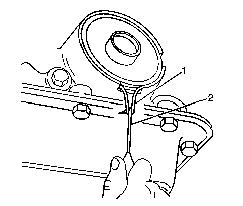 9. Remove the servo cover and the O-ring seal. If the cover is hung up on the seal, use a pick (2) to pull and stretch the seal (1) out of the groove. Cut and remove the O-ring seal before removing the cover.