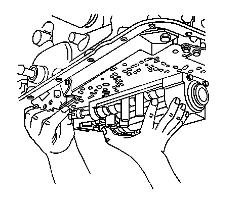 Important: Keep the control valve body level when raising it to the transmission case. This will prevent the loss of checkballs located in the control valve body passages.