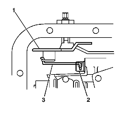 3. Verify that the manual valve link (3) is installed properly to the inside detent lever (1) and the manual valve (2).