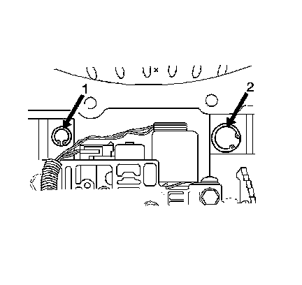8. Remove the TCC valve retainer ring (1).