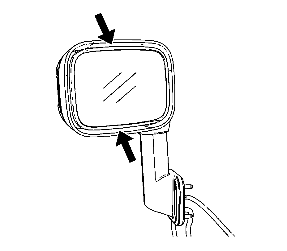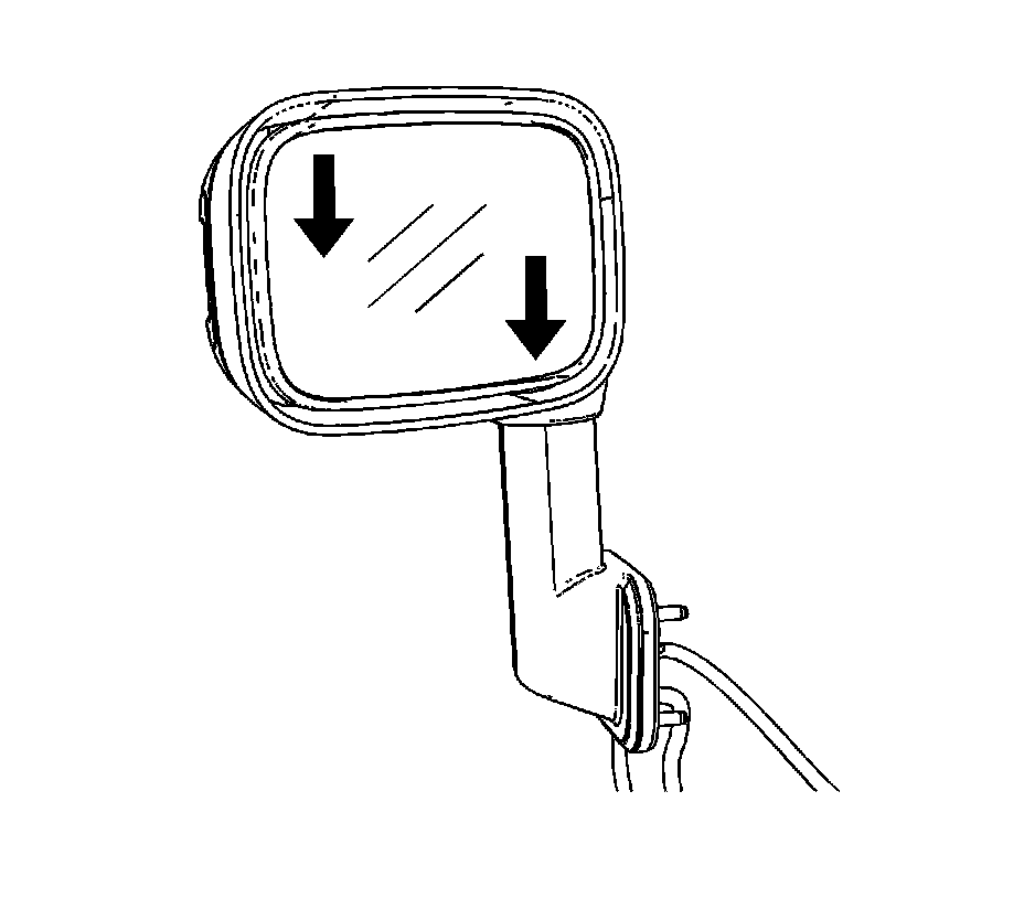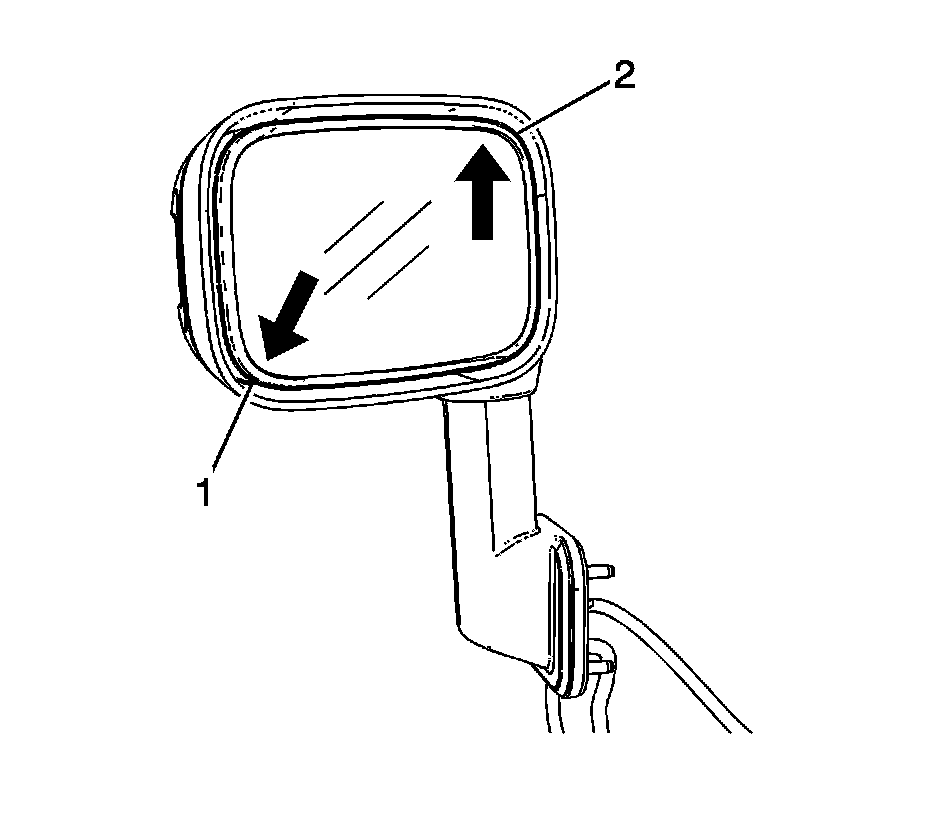 1. Push mirror glass bottom outboard (1) corner, furthest away from the vehicle door, as far as possible into the mirror housing.