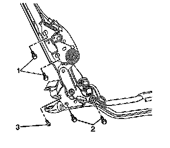 6. Install the screw (3) that retains the latch assembly to the seat frame.