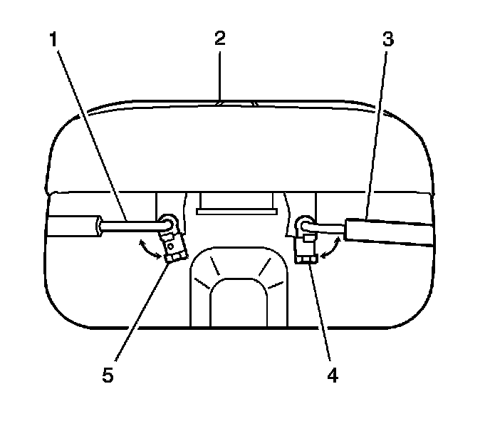 4. Release the 2 lock rod retaining clips (4, 5) from the lock rods (1, 3).