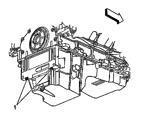 4. Install the oil pan-to-rear cover bolts (1) until snug. Do not overtighten.