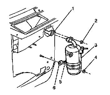 3. Install the retaining bracket (6) to the accumulator.