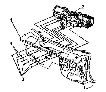 2. Install the HVAC module assembly (2) to the vehicle (1).