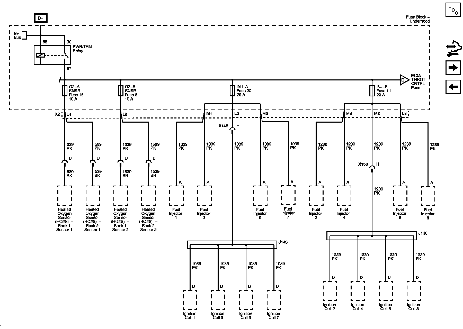 O2-A, O2-B, INJ-A, INJ-B Fuses and PWR/TRN Relay