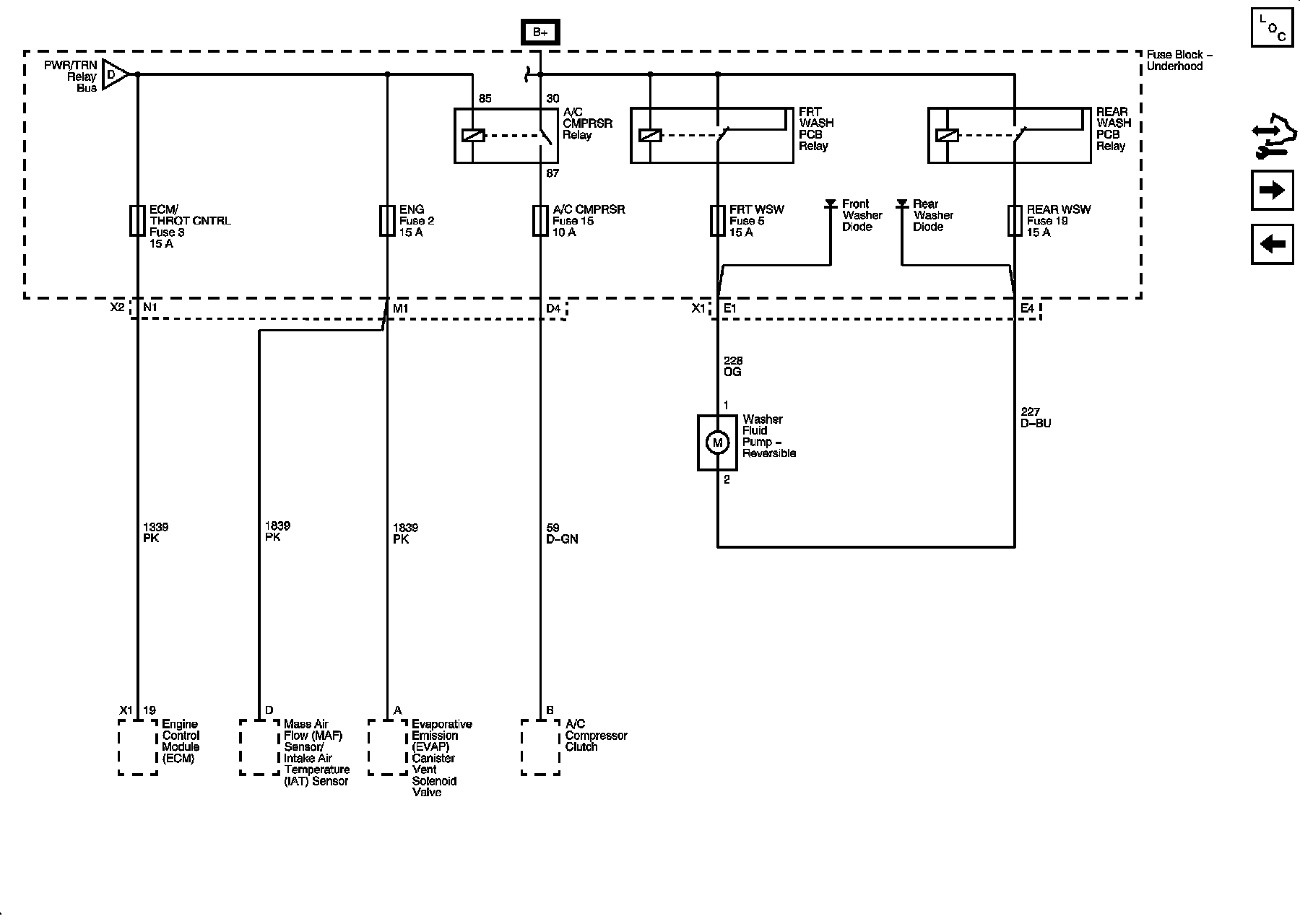 ECM/THROT CNTRL, ENG A/C CMPRSR, FRT WSW and REAR WSW Fuses