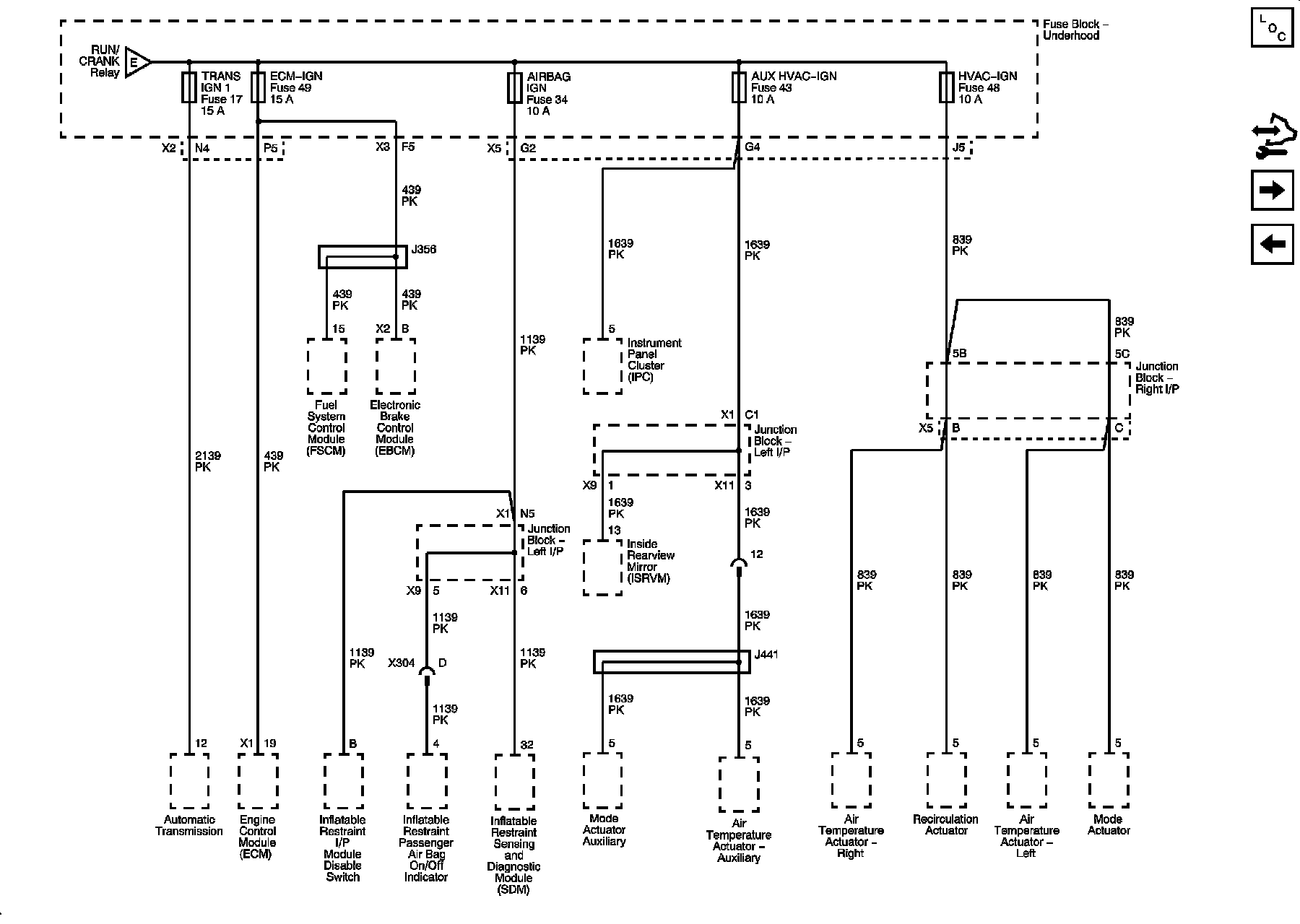 TRANS IGN 1, ECM-IGN, AIRBAG IGN, AUX HVAC-IGN and HVAC-IGN Fuses