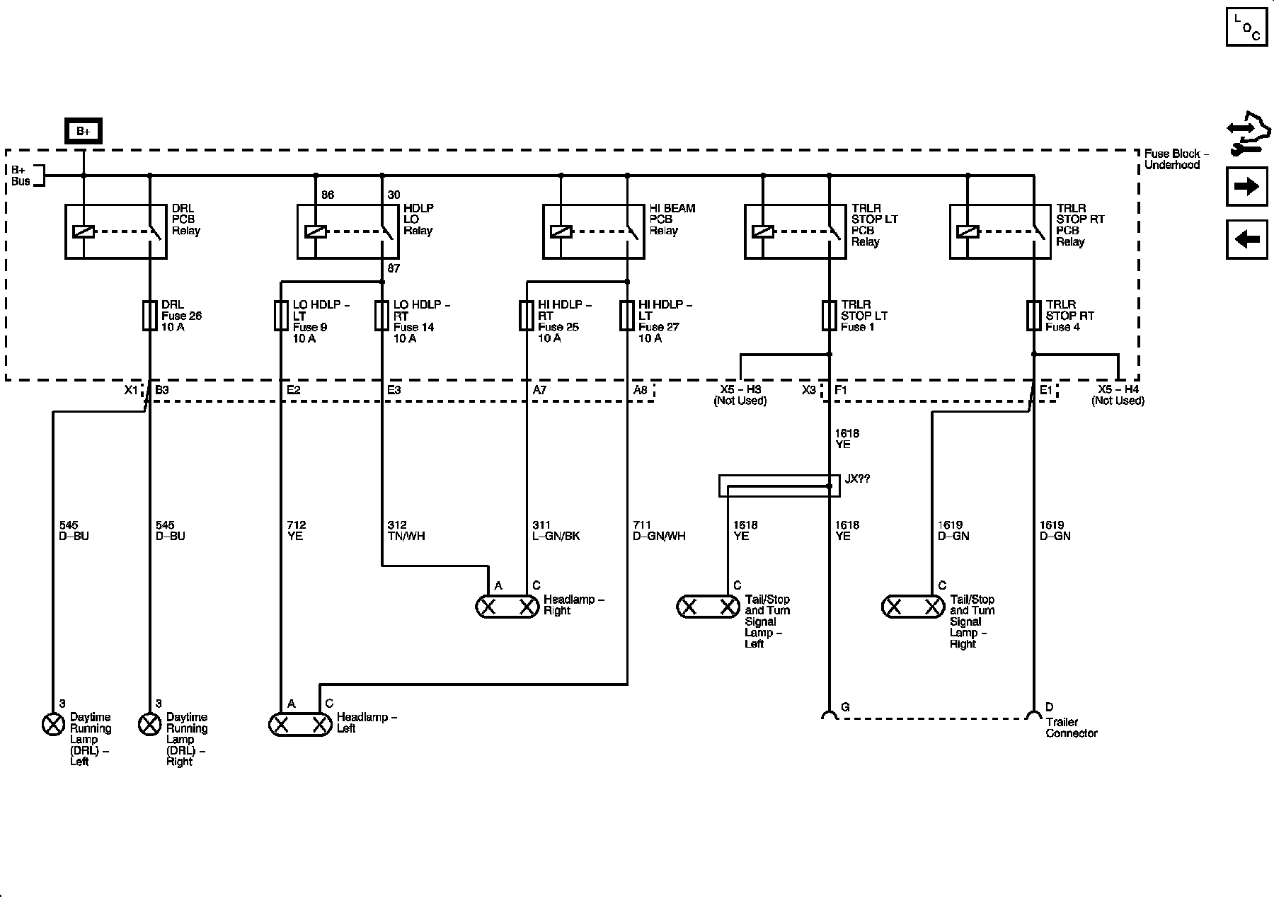 DRL, LO HDLP-LT, LO HDLP-RT, HI HDLP-RT, HIHDLP-LT, TRLR STOP LT and TRLR STOP RT Fuses