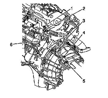 5. Install the fuel pipes into the bellhousing stud clip (4).