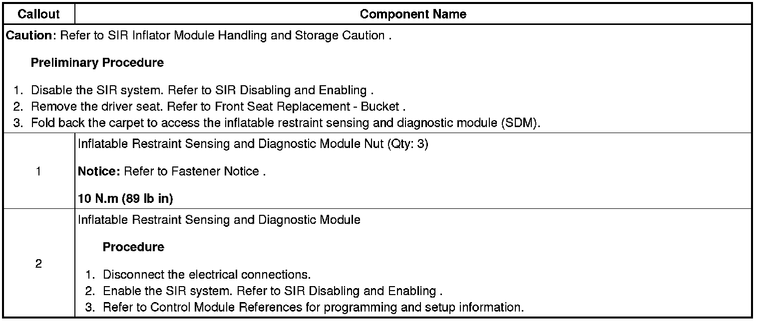 Inflatable Restraint Sensing and Diagnostic Module Replacement