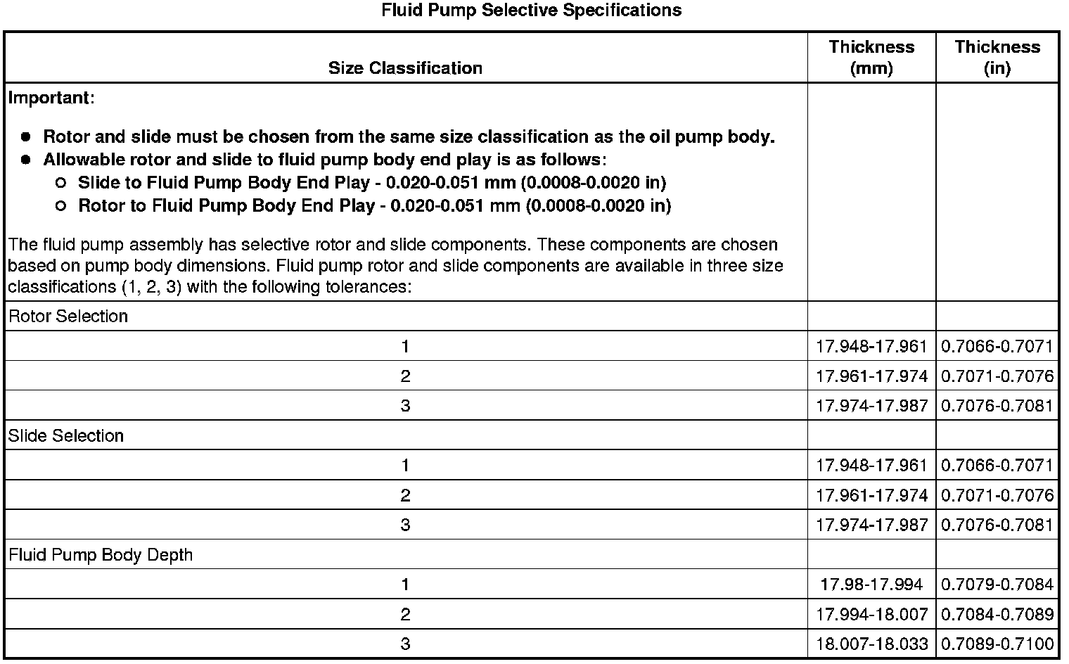 Fluid Pump Selective Specifications