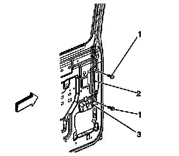 2. Remove the door trim panel. Refer to Rear Side Door Trim Panel Replacement (Rear Side Door Trim Panel Replacement) .