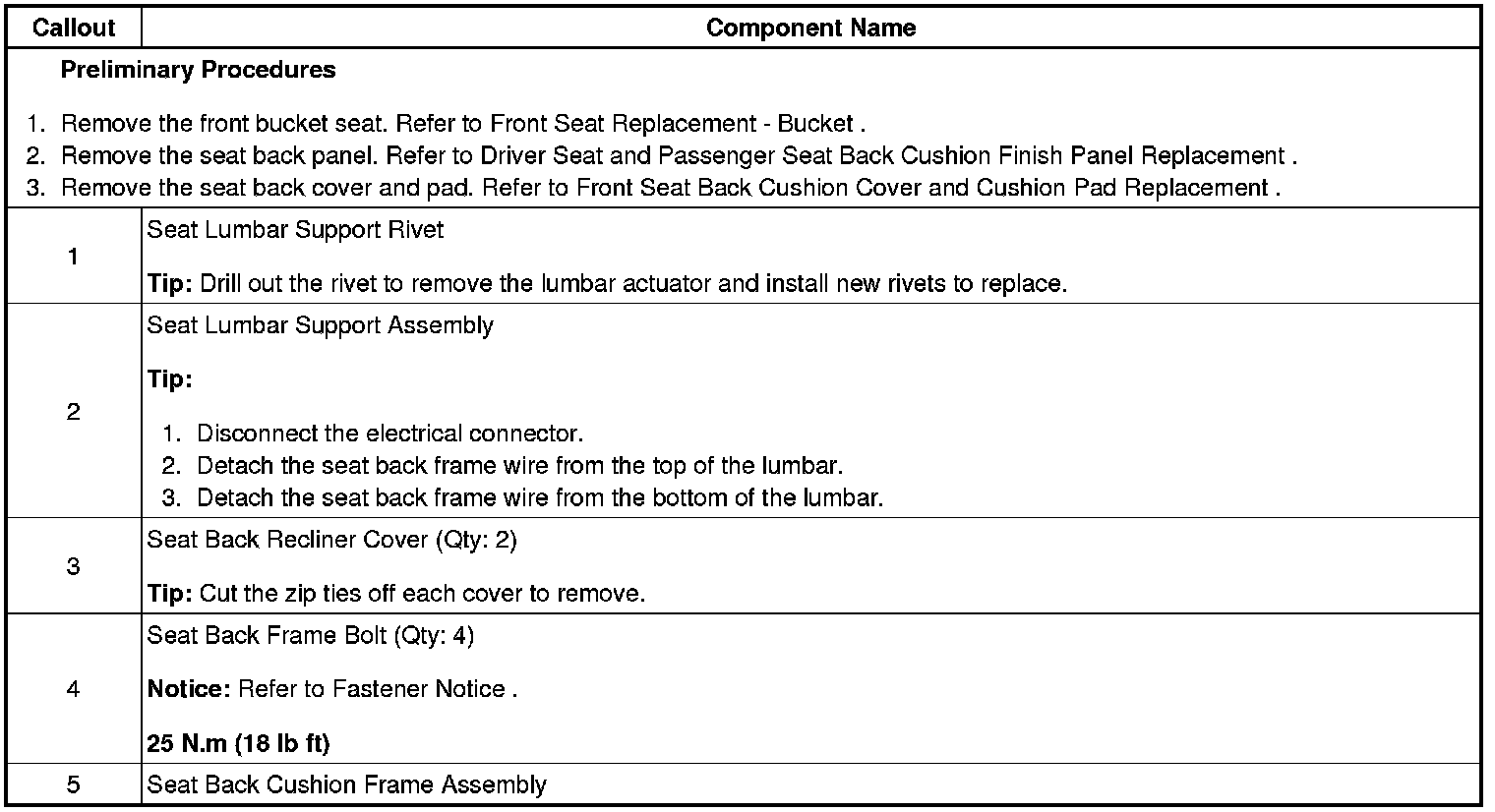 Front Seat Back Frame Replacement