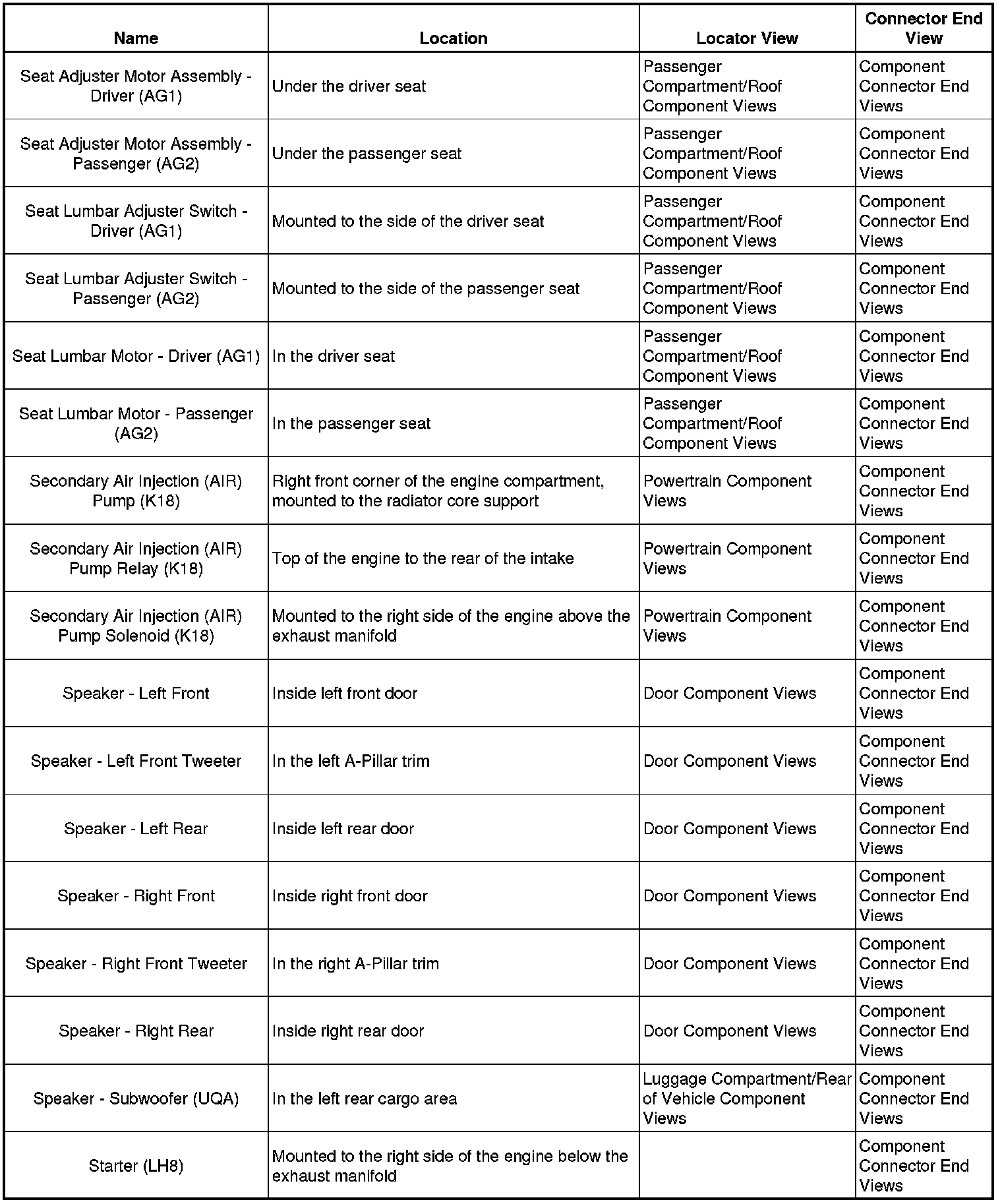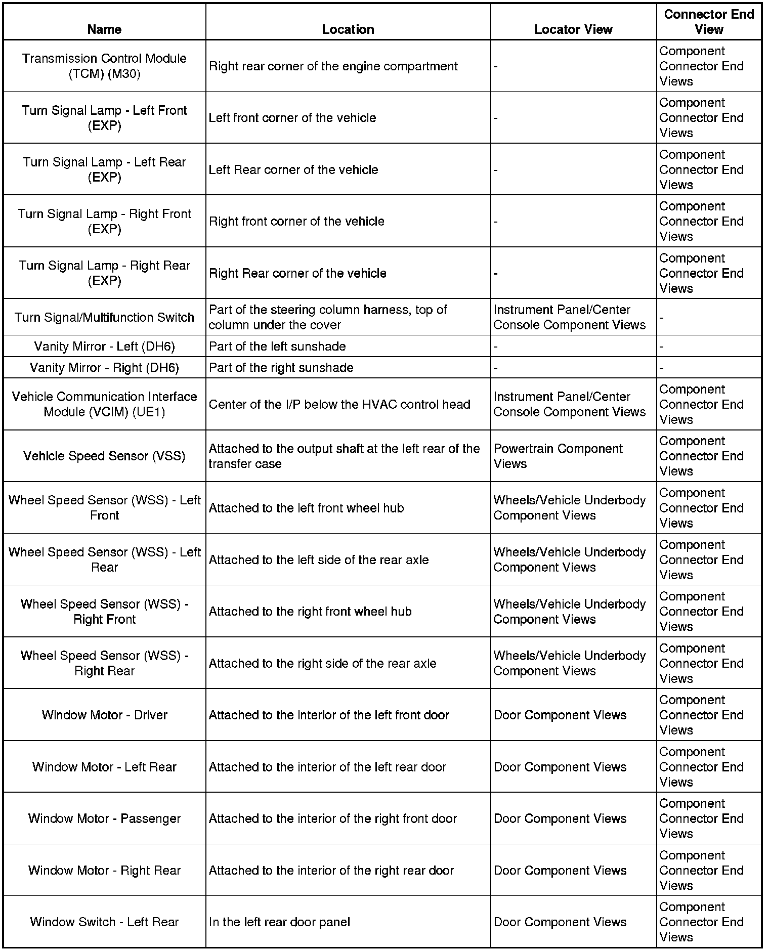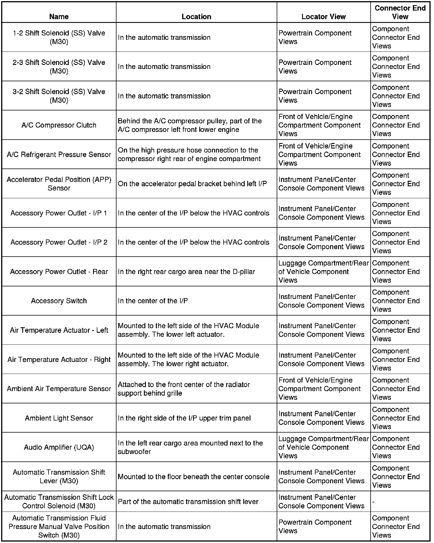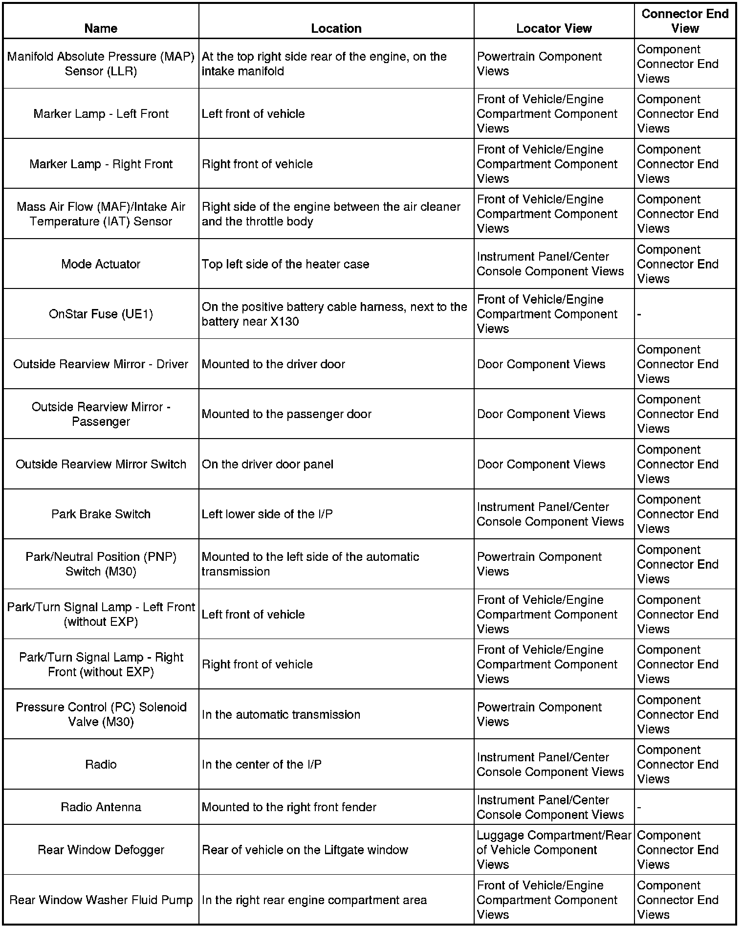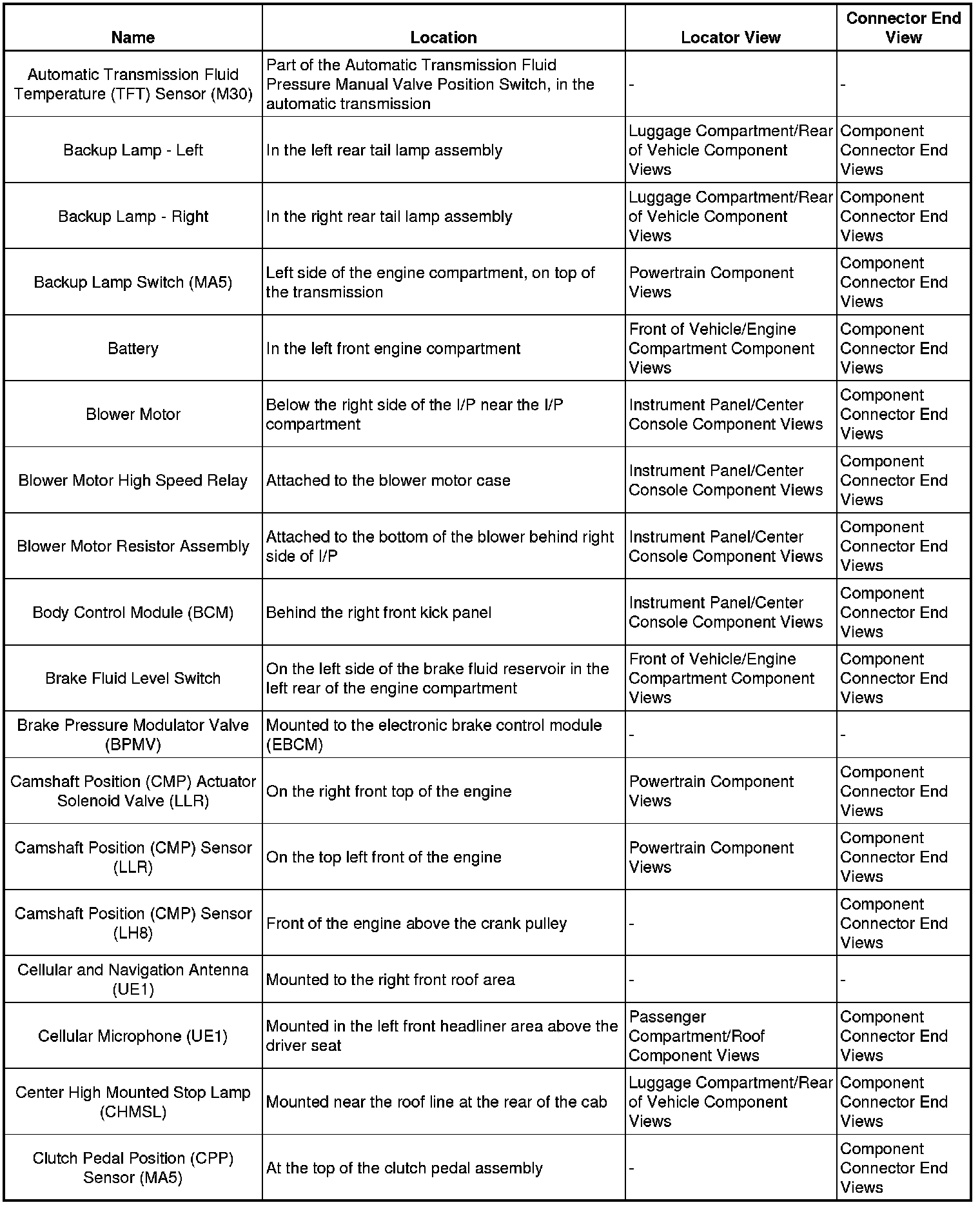 Master Electrical Component List