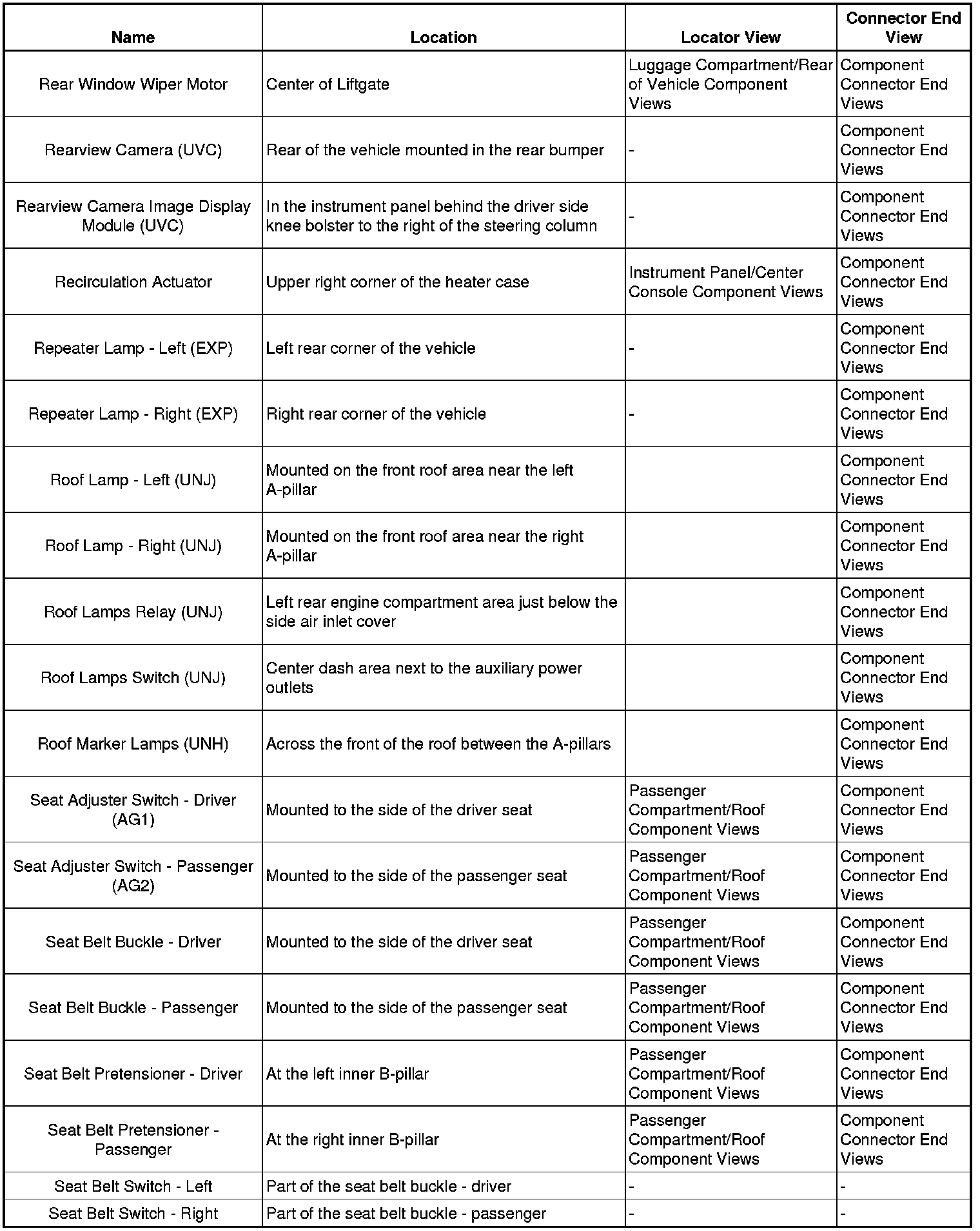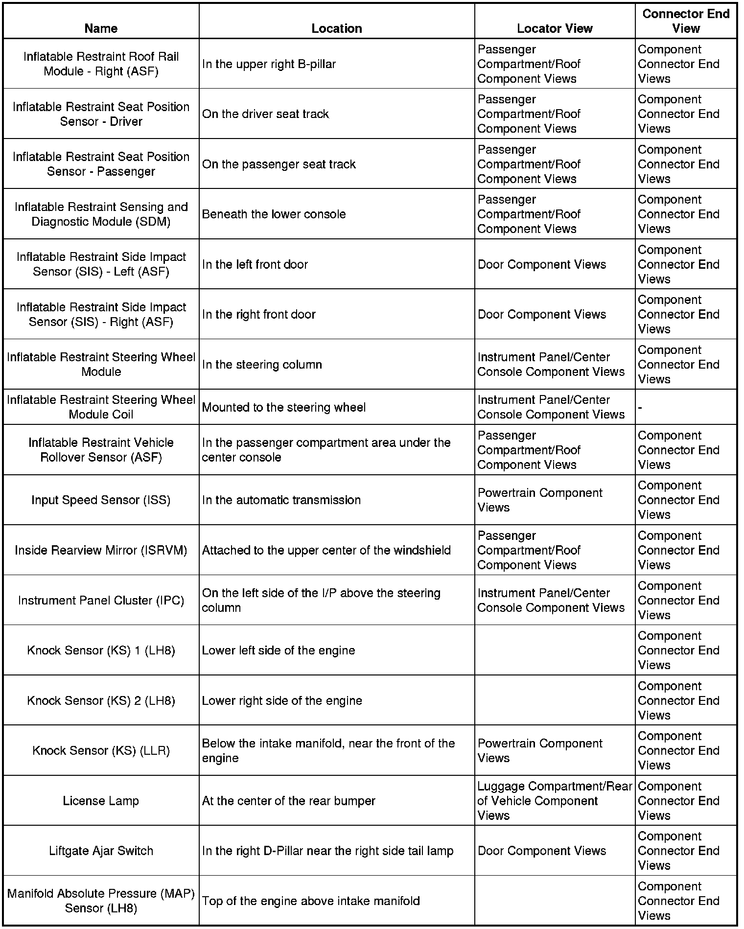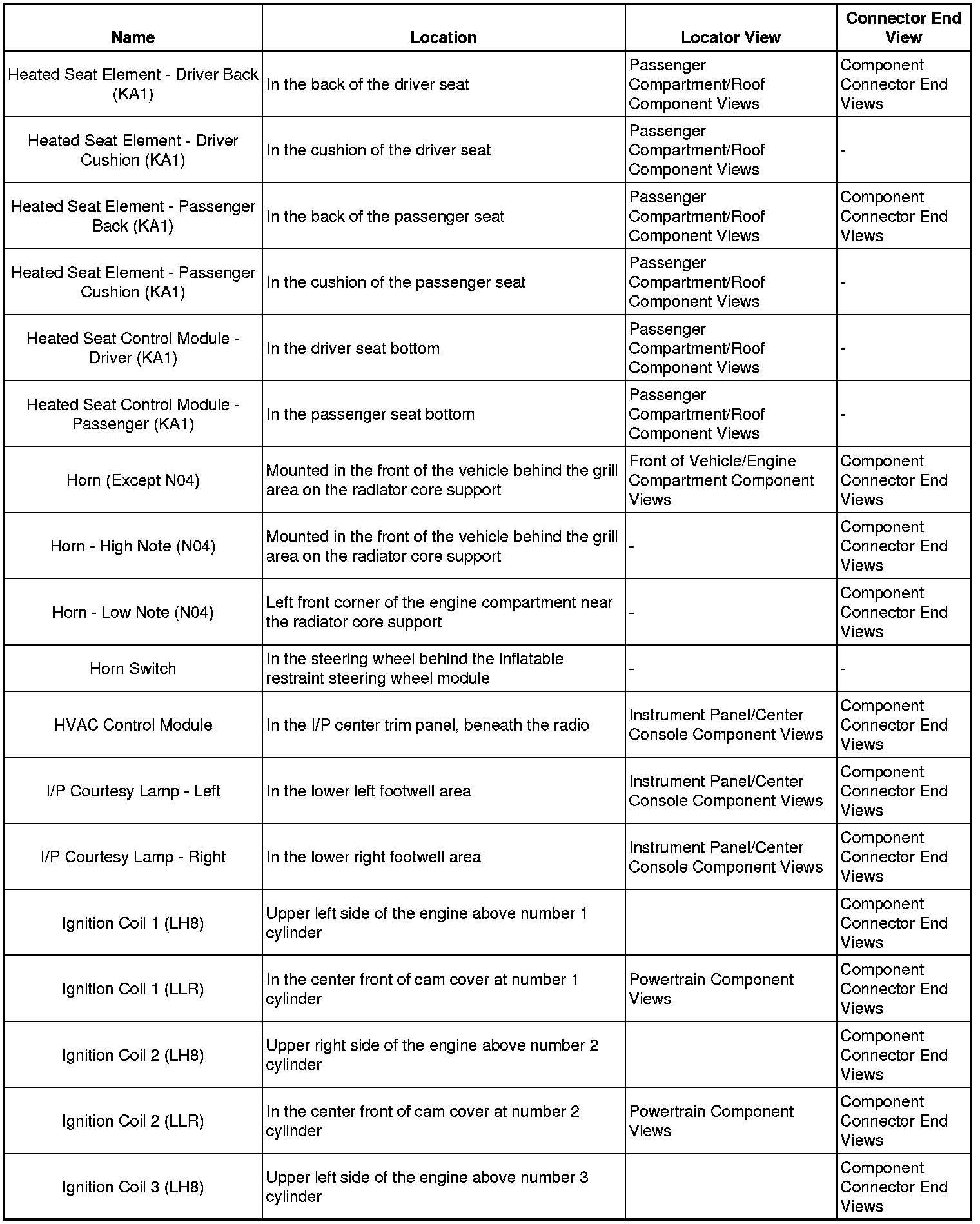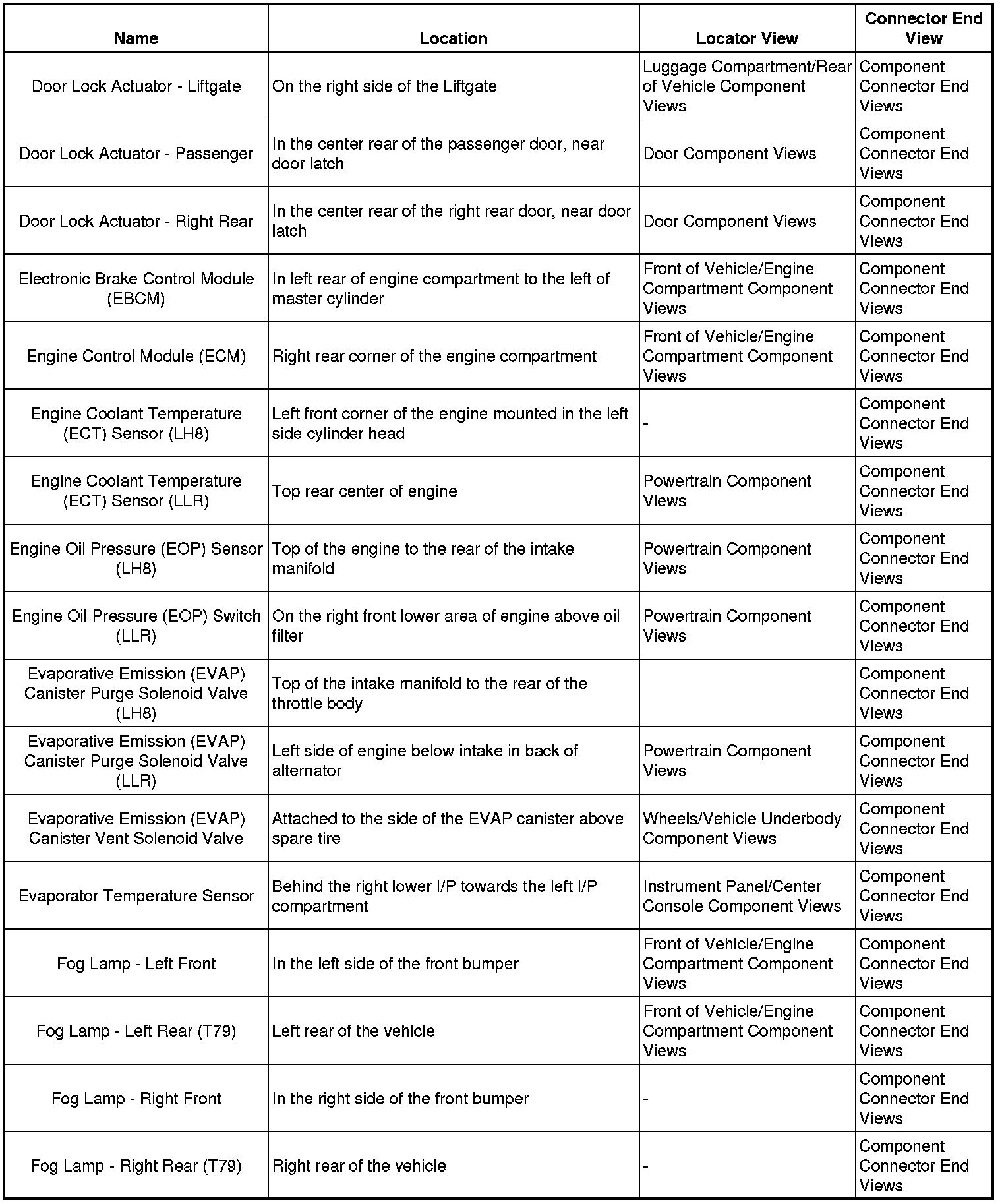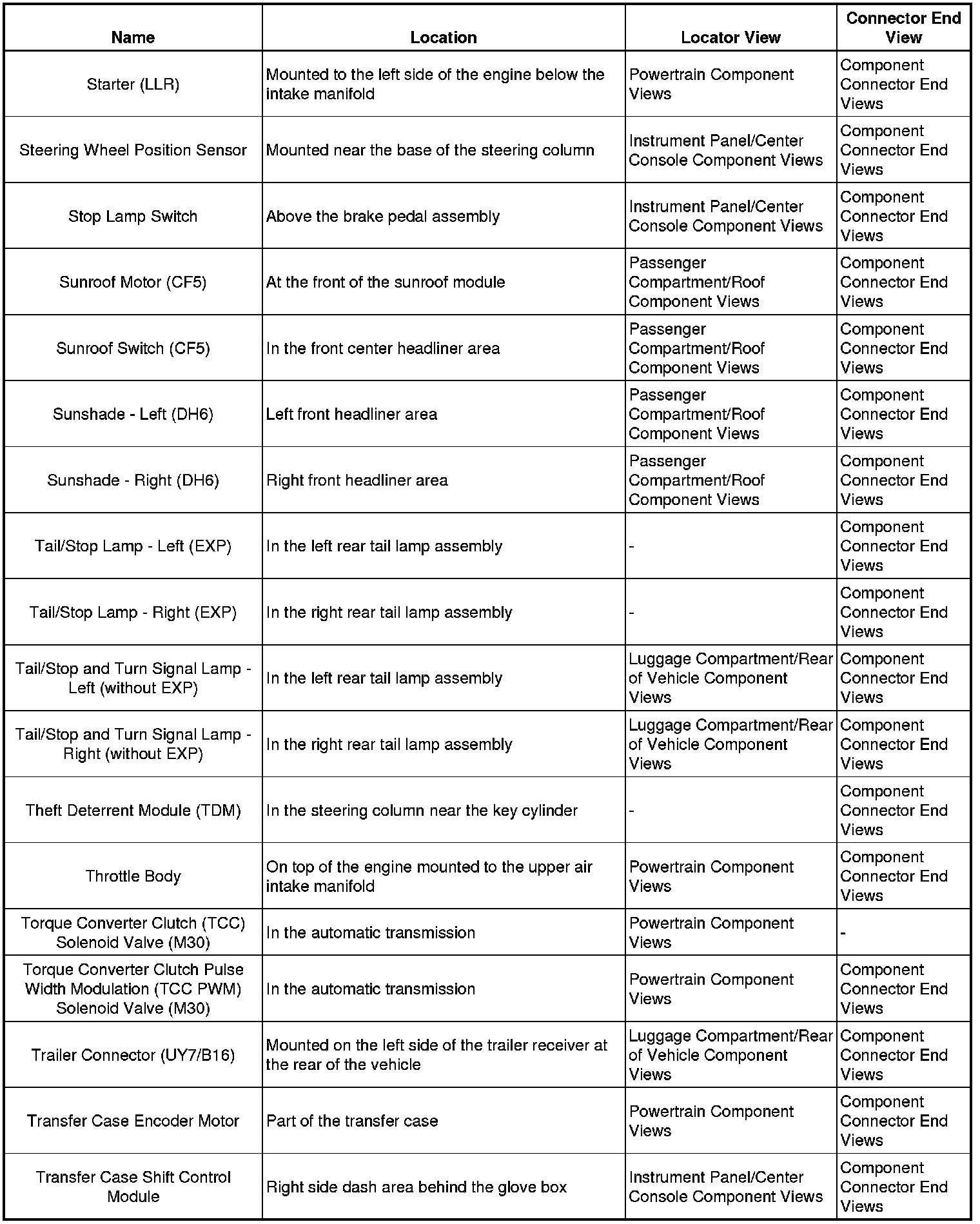Master Electrical Component List