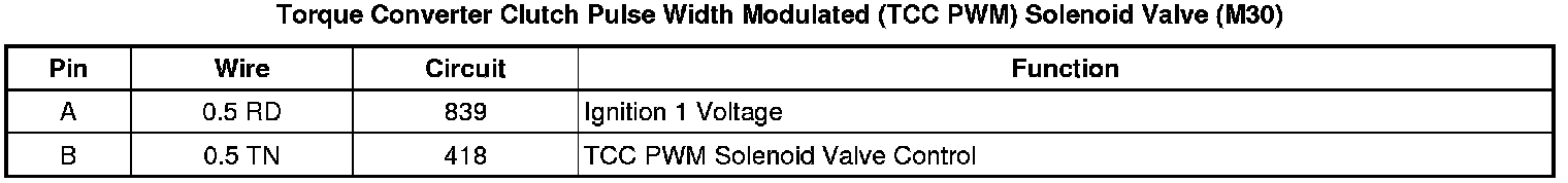 Torque Converter Clutch Pulse Width Modulated (TCC PWM) Solenoid Valve (M30)