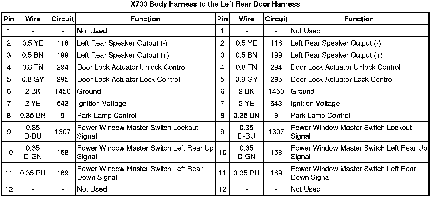X700 Body Harness to the Left Rear Door Harness