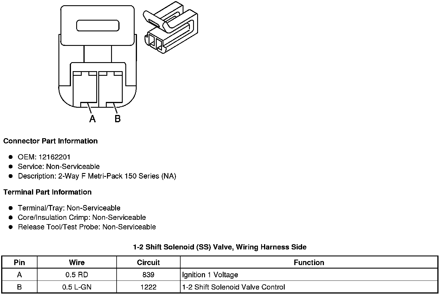 1-2 Shift Solenoid (SS) Valve, Wiring Harness Side
