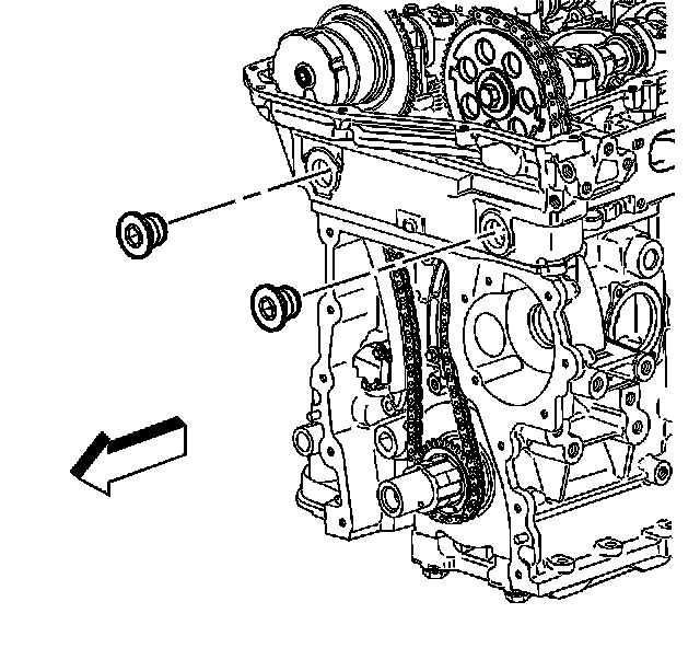 1. Remove the timing chain tensioner shoe. Refer to Timing Chain Tensioner Shoe Replacement (Timing Chain Tensioner Shoe Replacement) .