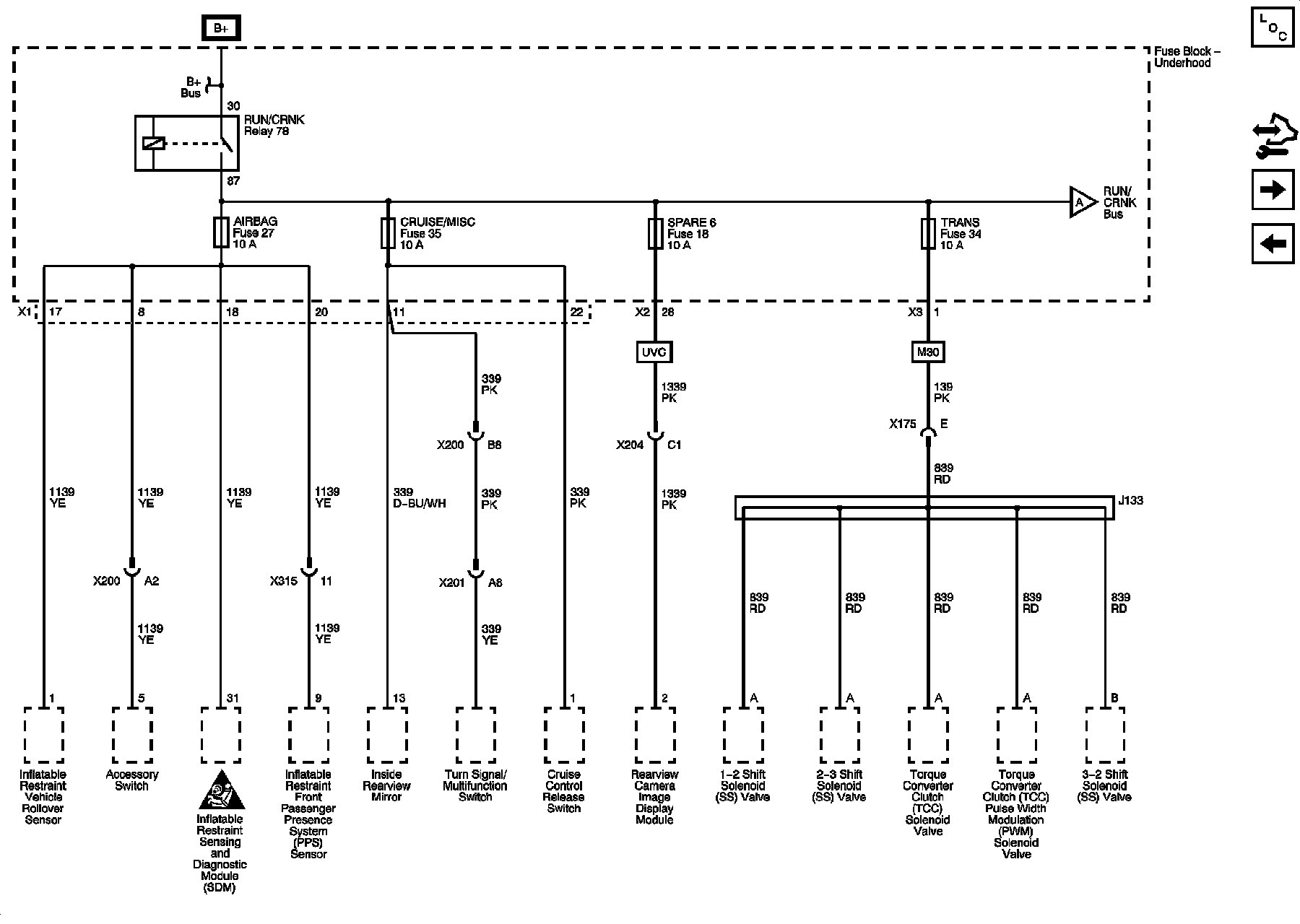RUN/CRNK Relay Bus - 1 of 3, AIRBAG, CRUISE/MISC, and TRANS Fuses