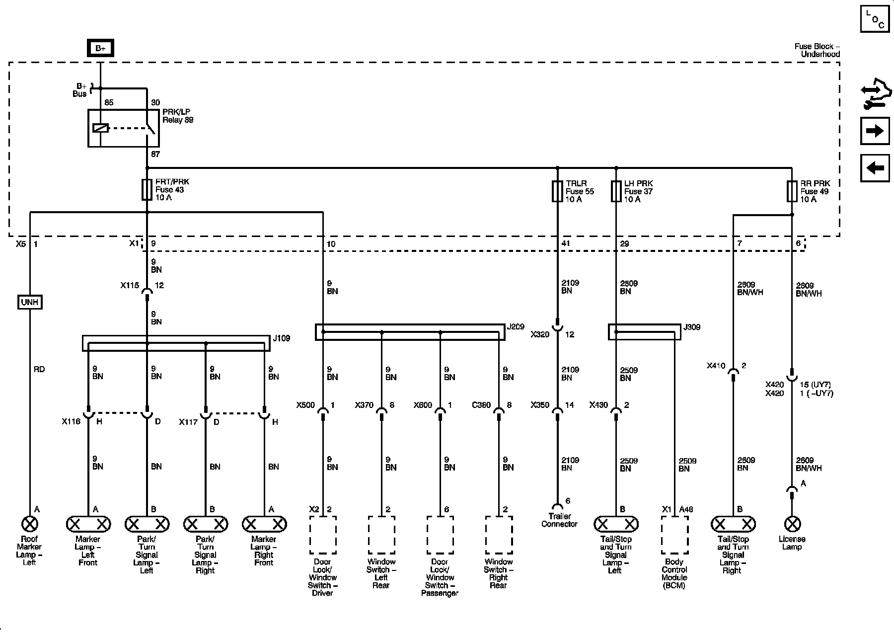FRT/PRK, LR PRK, RR PRK, and TRLR Fuses