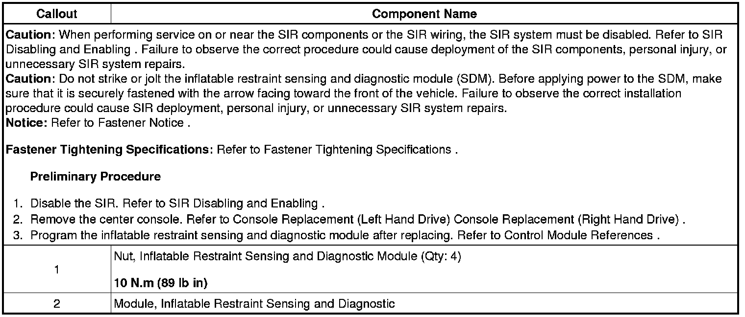 Inflatable Restraint Sensing and Diagnostic Module Replacement