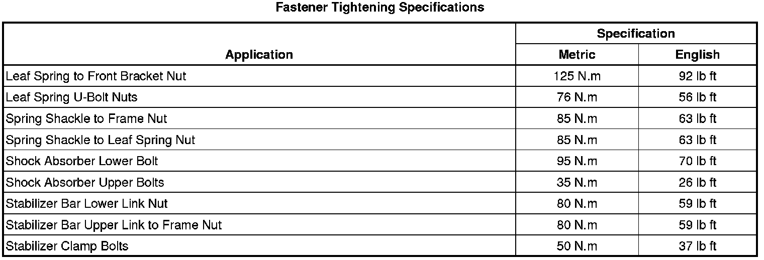 Fastener Tightening Specifications