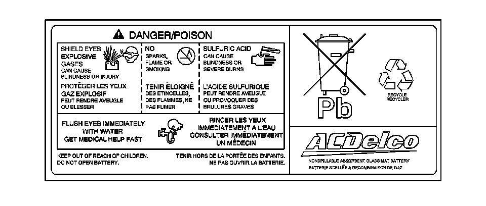 * Do not allow the battery electrolyte to contact the eyes or the skin. Flush immediately and thoroughly any contacted areas with water and get medical help.