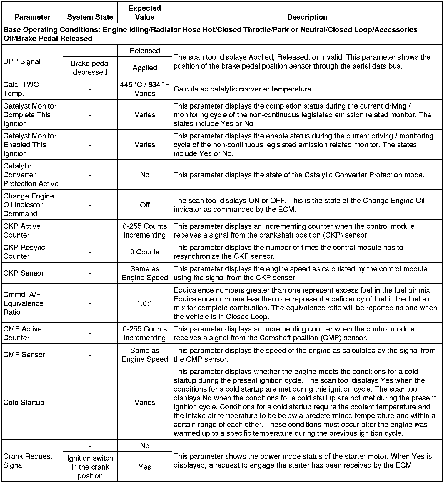 The Engine Control Module Scan Tool Data List contains all engine-related parameters that are available on the scan tool. The list is arranged in alphabetical order. A given parameter may appear in any one of the data lists, and in some cases may appear more than once, or in more than one data list in order to group certain related parameters together.