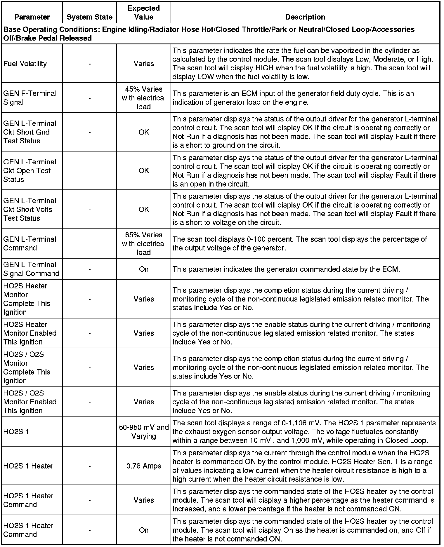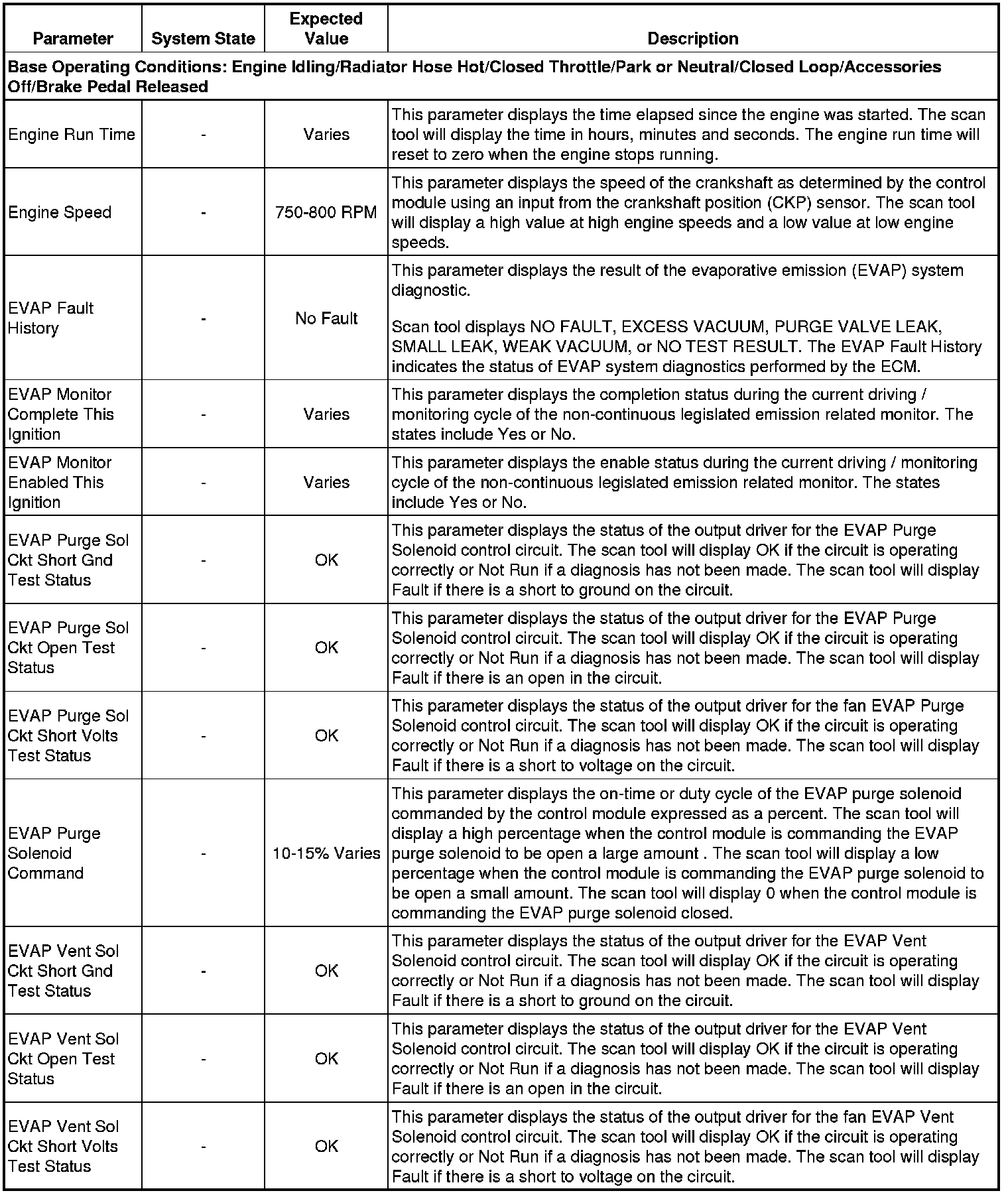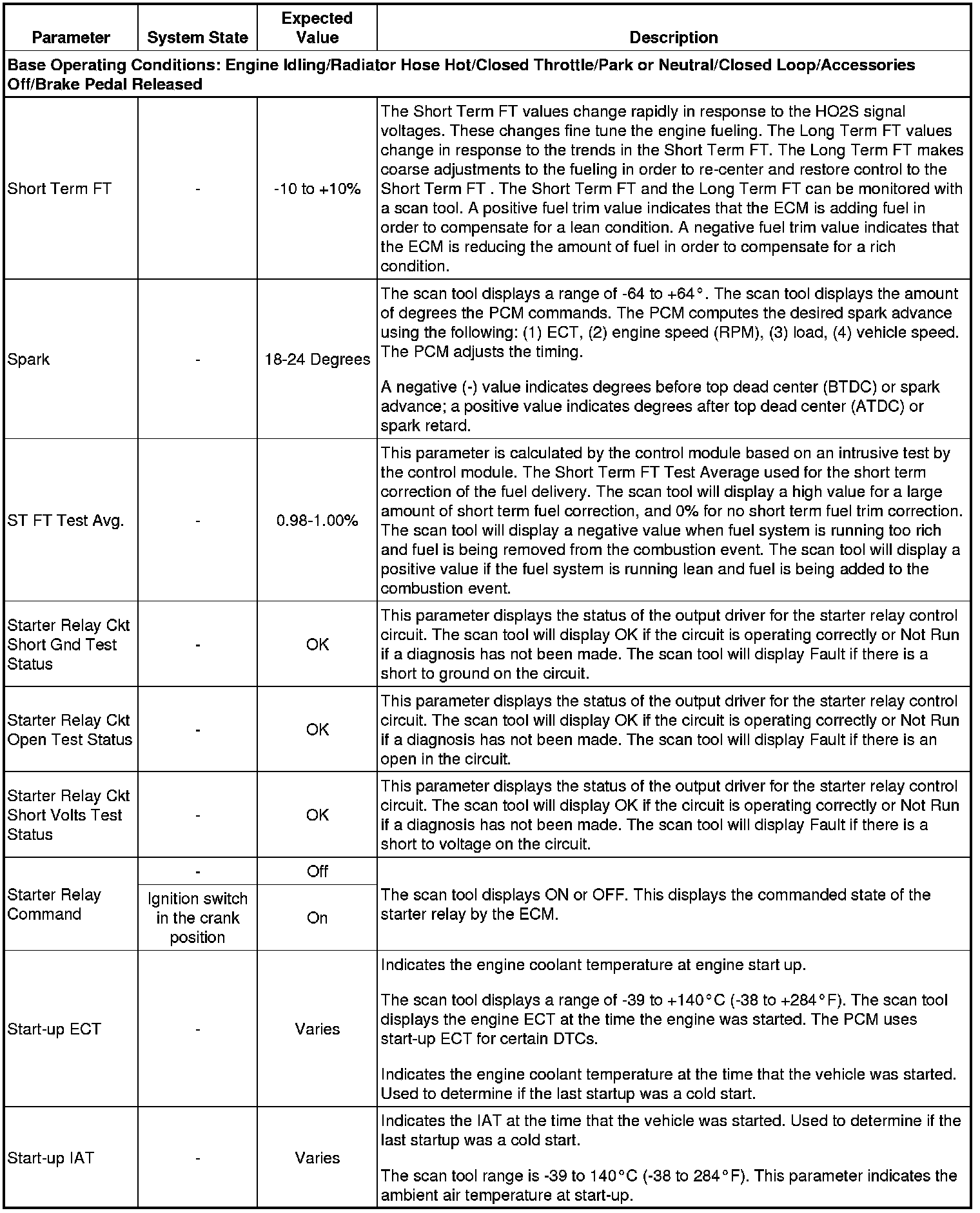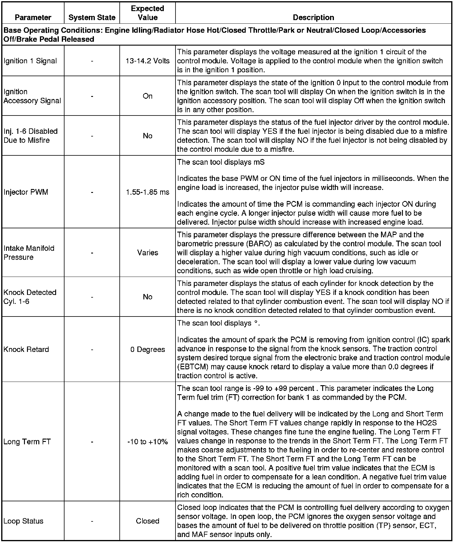 The scan tool values from a properly running engine may be used for comparison with the engine you are diagnosing. The Engine Scan Tool Data List represents values that would be seen on a normally running engine.