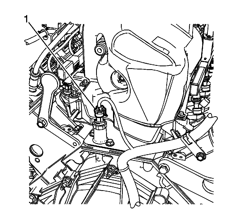 21. Disconnect the EVAP canister purge tube (1) quick connect fitting from the EVAP canister purge solenoid. Refer to Plastic Collar Quick Connect Fitting Service (Plastic Collar Quick Connect Fitting Service) .