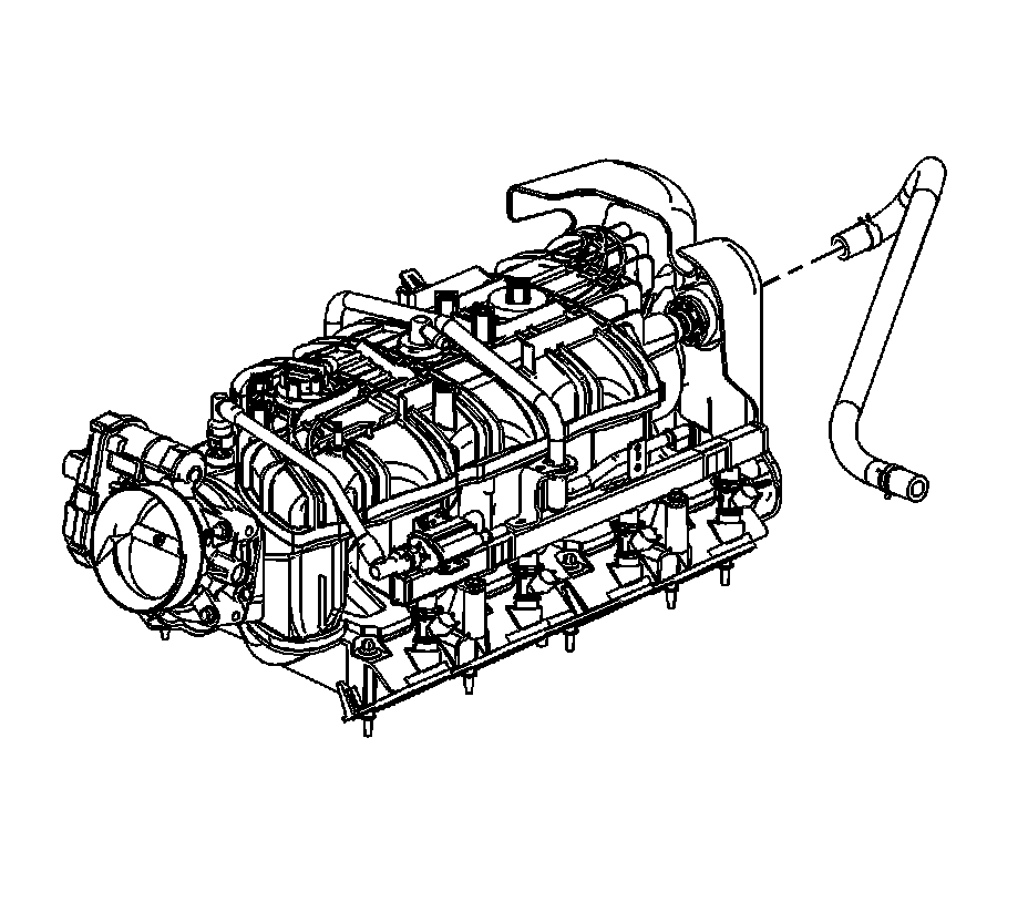 23. Remove the positive crankcase ventilation (PCV) hose from the intake manifold fitting.