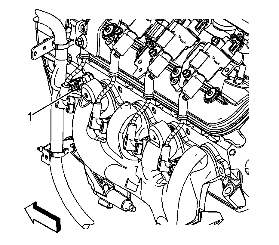 2. Disconnect the engine wiring harness electrical connector (1) from the engine coolant temperature (ECT) sensor.