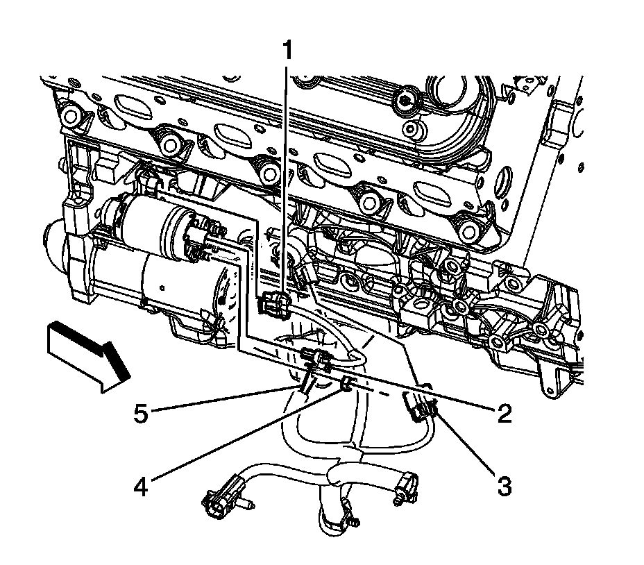 2. Disconnect the engine wiring harness electrical connector (3) from the knock sensor.