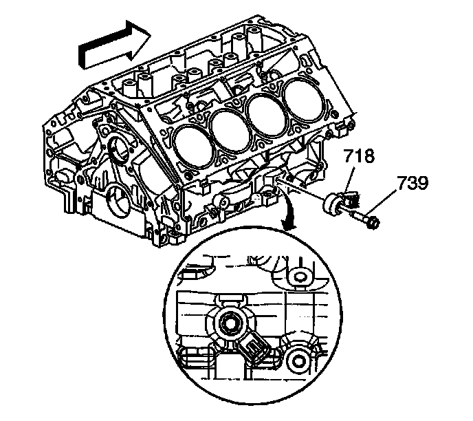 3. Remove the knock sensor bolt (739) and sensor (718).