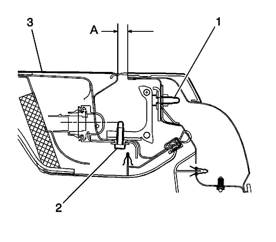 2. Adjust the liftgate (1) to the rear bumper fascia (2) gap (A) to 22-24 mm (0.86 in-0.94 in).